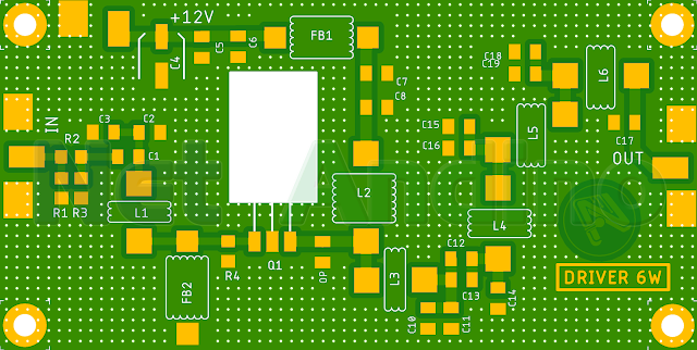 Driver (excitador o controlador) con el transistor 2SC1971 con potencia de salida de hasta 10W con solo 500mW de excitación, pero lo recomendable e idóneo para su uso continuo y duradero del equipo será de 4 a 6W.